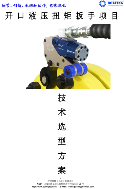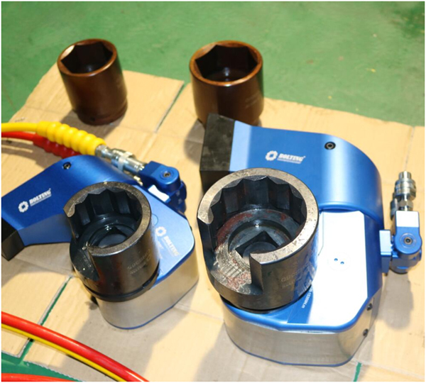 業(yè)主方之前從武漢購(gòu)買過一套德國(guó)品牌液壓扳手,使用情況并不理想,由于液壓泵和開口液壓扳手較為笨重,故不考慮。